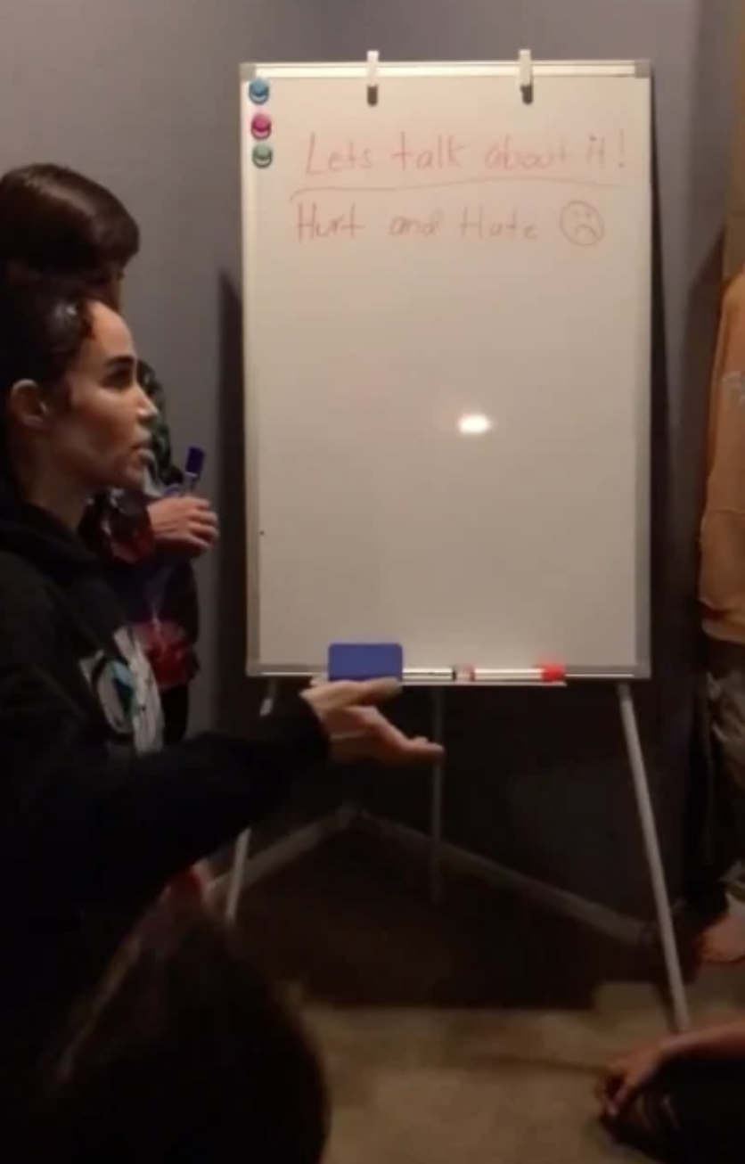 Au cours d’une de ses rencontres hebdomadaires avec ses enfants, Nadya a animé une discussion sur le thème de « la blessure et la haine ». « Une fois par semaine, j’éduque mes enfants sur divers sujets allant de la santé mentale à la santé physique, à l’impact de la nutrition sur notre santé et notre bien-être, aux problèmes critiques auxquels notre société et notre monde sont confrontés », écrit-elle dans la légende. « J’ai choisi de ne partager qu’un petit fragment de notre discussion, car cela peut durer des heures. Mes enfants partagent et discutent des histoires personnelles qu’ils ont vécues, que je garde privées.