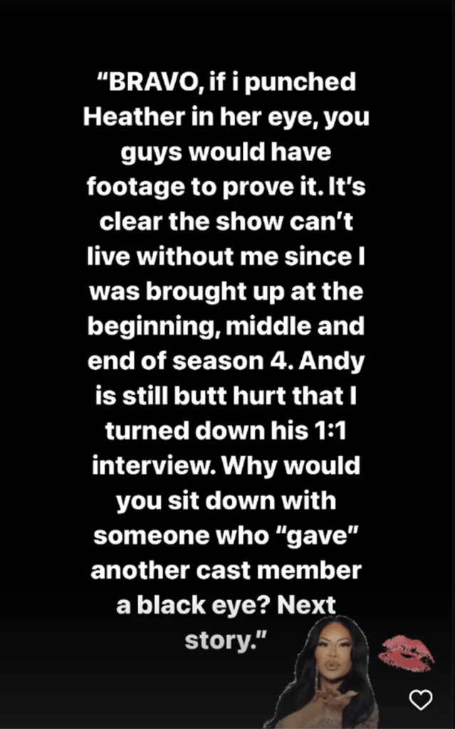 La finale a également confirmé Jen Shah comme la cause de celle de Heather oeil au beurre noir, une accusation que le criminel reconnu coupable a depuis niée.